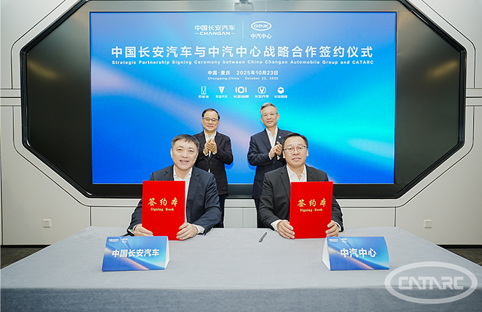 2025年10月23日,中汽中心與中國(guó)長(zhǎng)安汽車集團(tuán)有限公司(以下簡(jiǎn)稱“中國(guó)長(zhǎng)安汽車”)在重慶舉行戰(zhàn)略合作協(xié)議簽約儀式。中汽中心黨委書記、董事長(zhǎng)安鐵成,中國(guó)長(zhǎng)安汽車黨委書記、董事長(zhǎng)朱華榮現(xiàn)場(chǎng)見證簽約,中汽中心黨委委員、副總經(jīng)理周華,中國(guó)長(zhǎng)安汽車黨委常委、副總經(jīng)理鄧威分別代表雙方簽署協(xié)議。